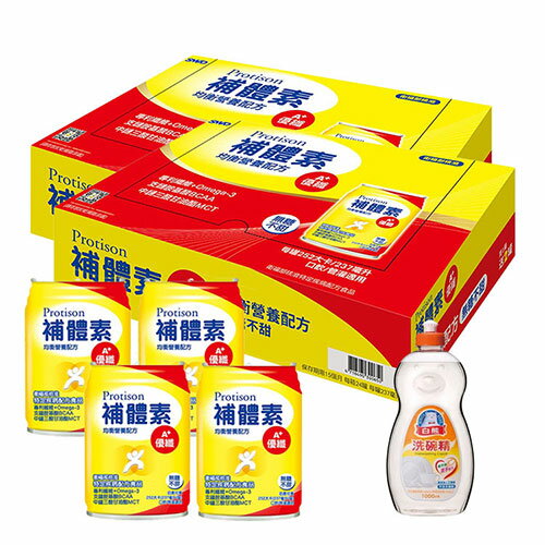 補體素優纖A+即飲-無糖不甜237ml x24罐 x2箱(送贈罐4罐+白熊洗碗精1000g*1)
