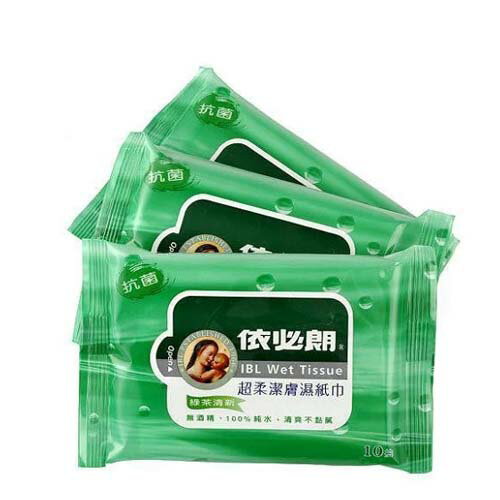 依必朗抗菌超柔潔膚濕紙巾-綠茶清新10抽x3 入(組)
